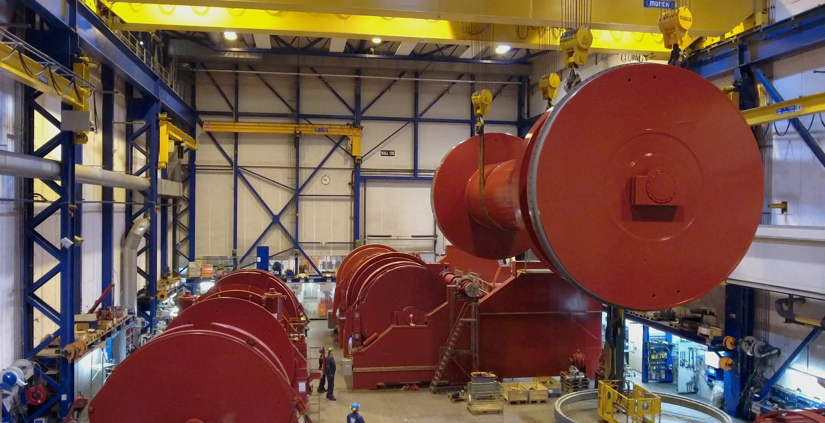 Winches for anchor handling vessels, tugs, floating rigs, pipe layers, and crane vessels. Compatible with Kongsberg Maritime PM motors.